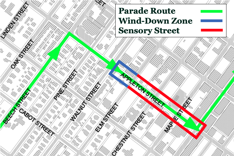 Additional parade monitors and security personnel will be present to help maintain the sensory-friendly environment.
